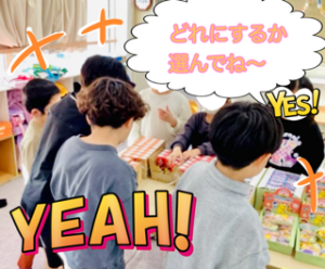 会の終わりに、クリスマスプレゼント(ノートやお菓子など)を選び、2年生がお名前シールを渡して渡してくれました🎁